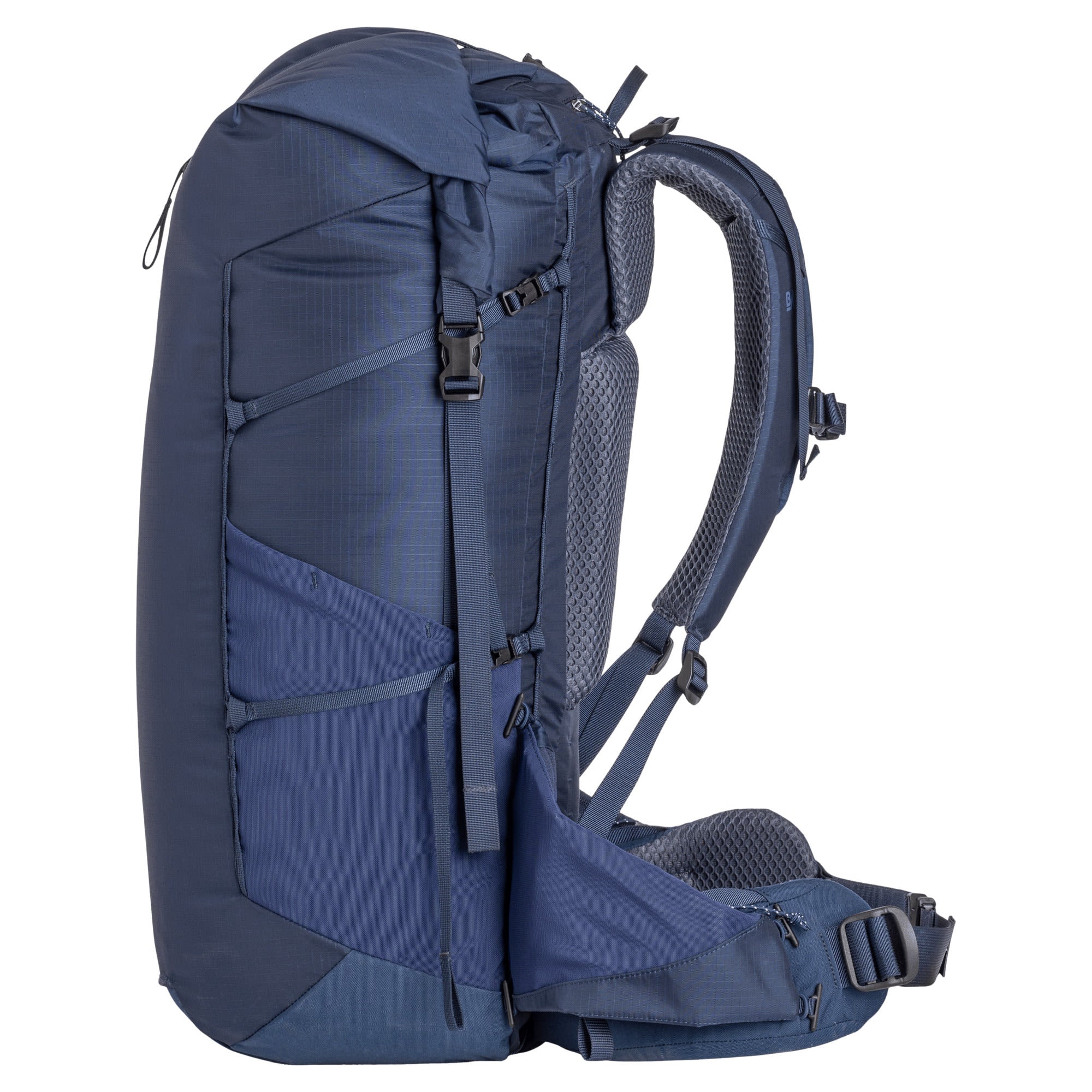 • Rolltop-Verschluss mit Reißverschluss für maximales Volumen (+10 L) und abnehmbare seitliche Kompressionsriemen zur Sicherung des Inhalts