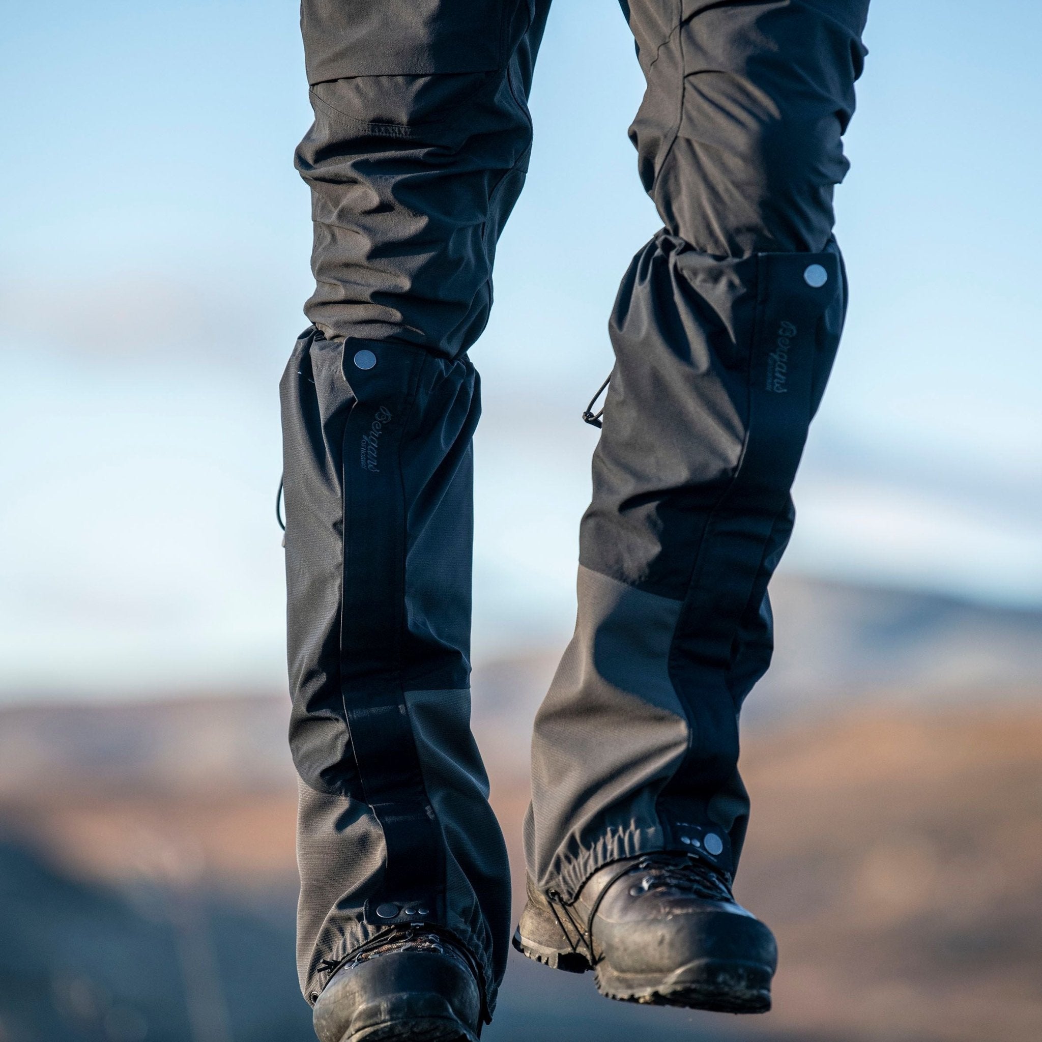 • Gaiter: Elastische Verstellmöglichkeit oben. Hakenbefestigung. Ersetz- und verstellbares elastisches Band. Reißverschluss kann vollständig geöffnet werden, Klettverschluss und Druckknopf am oberen und am unteren Ende. Innenseitiger Haftgummirand an den Beinabschlüssen.