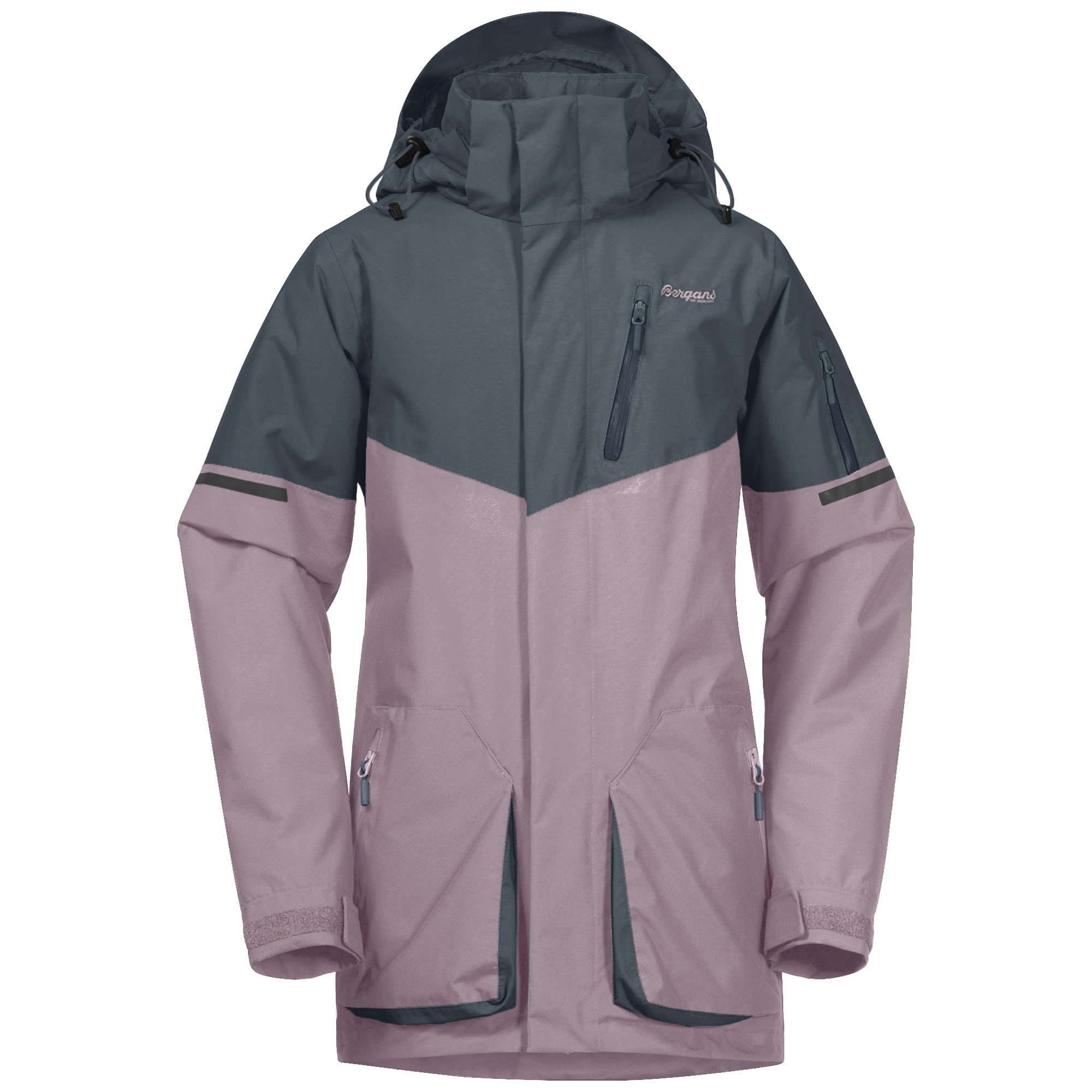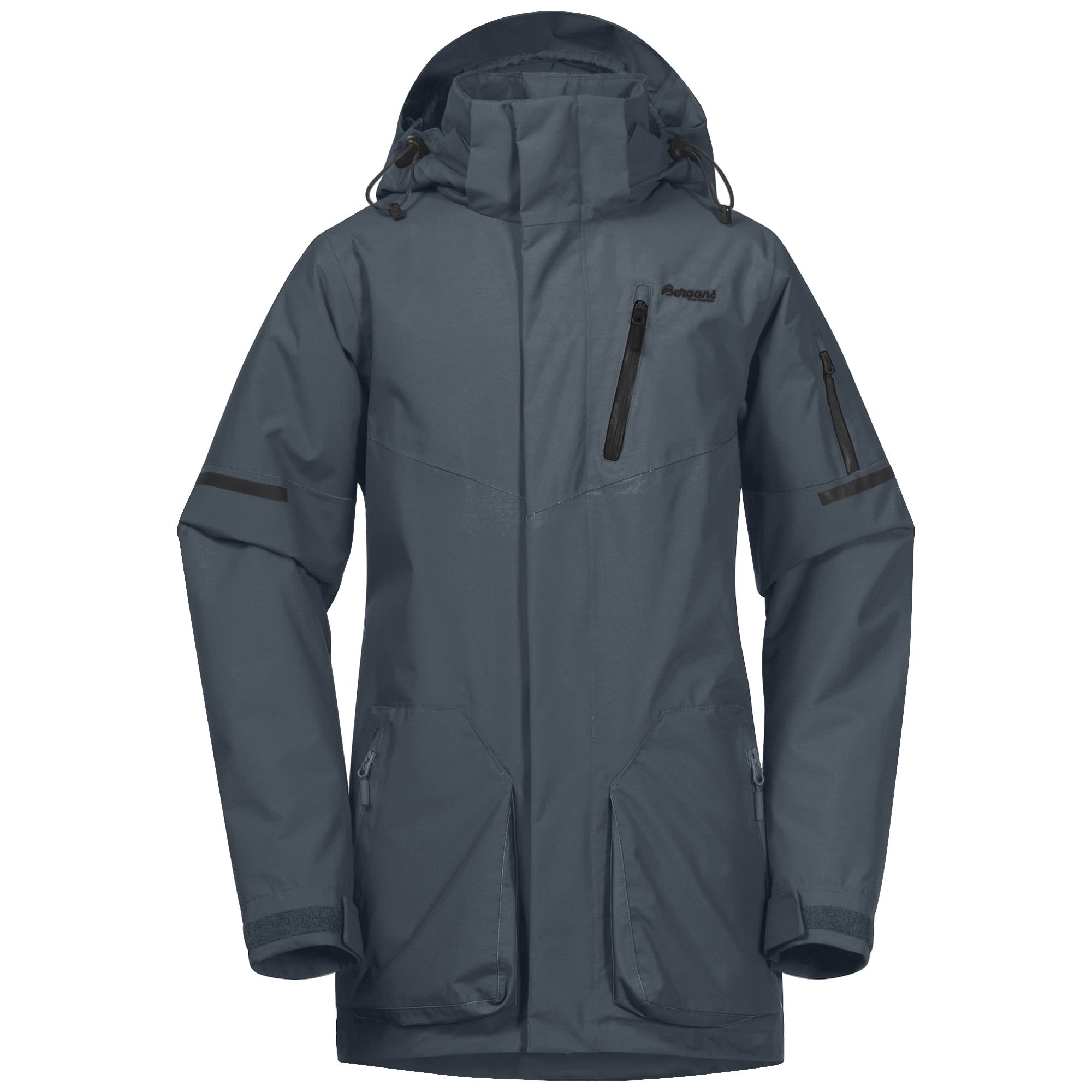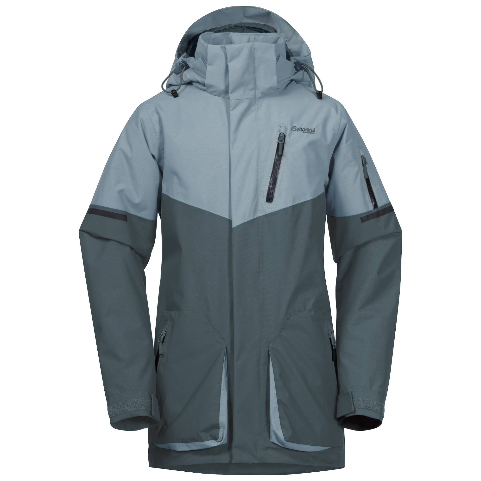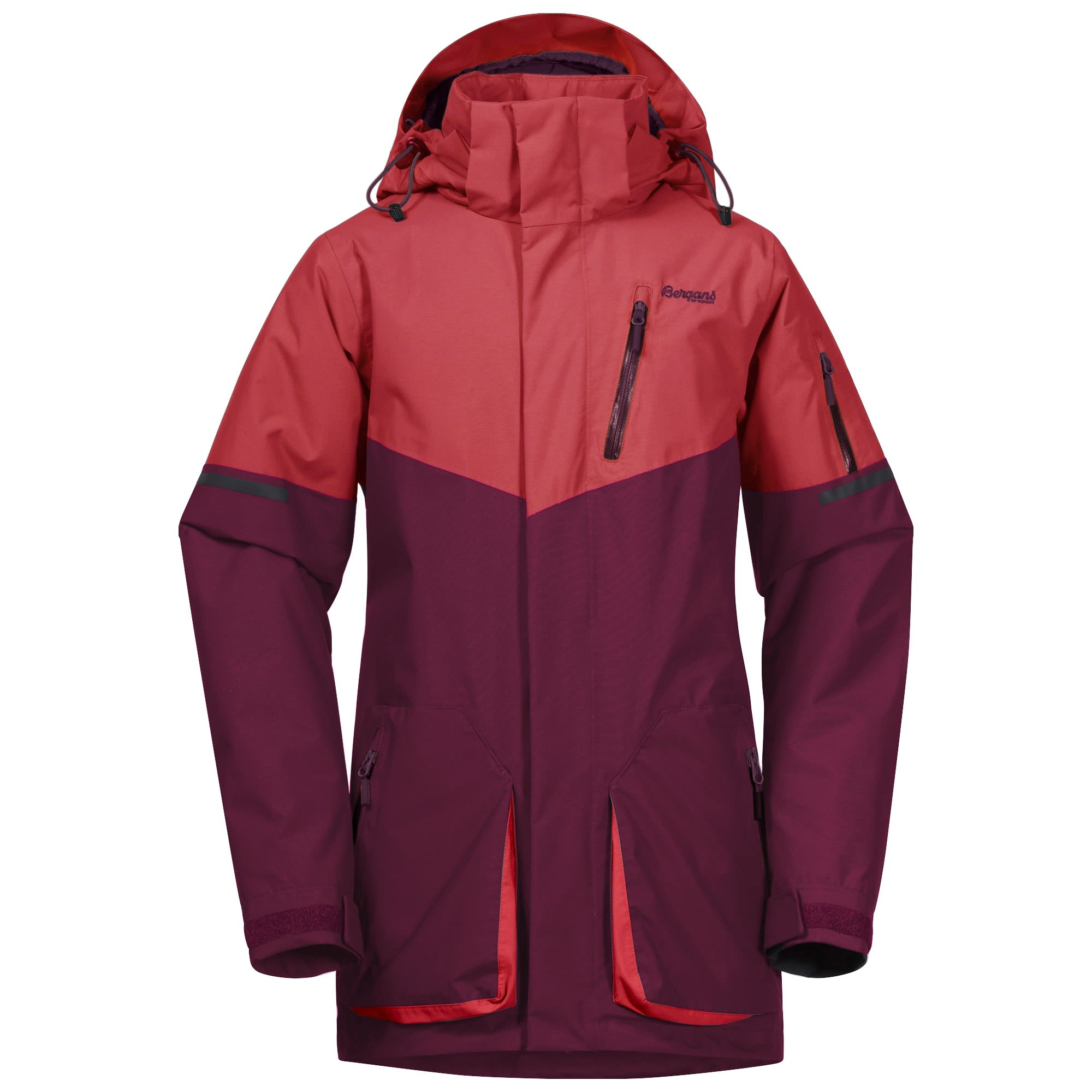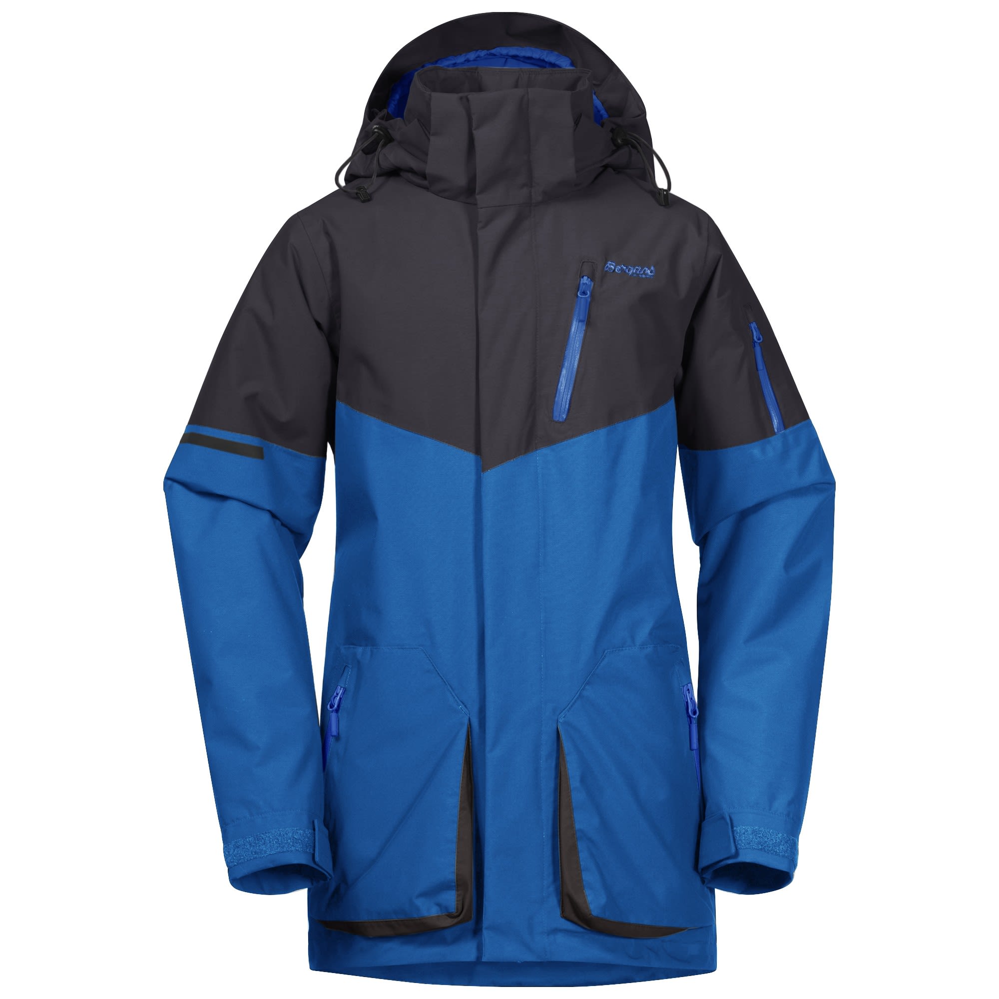 Die Knyken Insulated Youth Jacket von BERGANS ist eine lange, gerade geschnittene, technische Jacke für skibegeisterte Jugendliche.