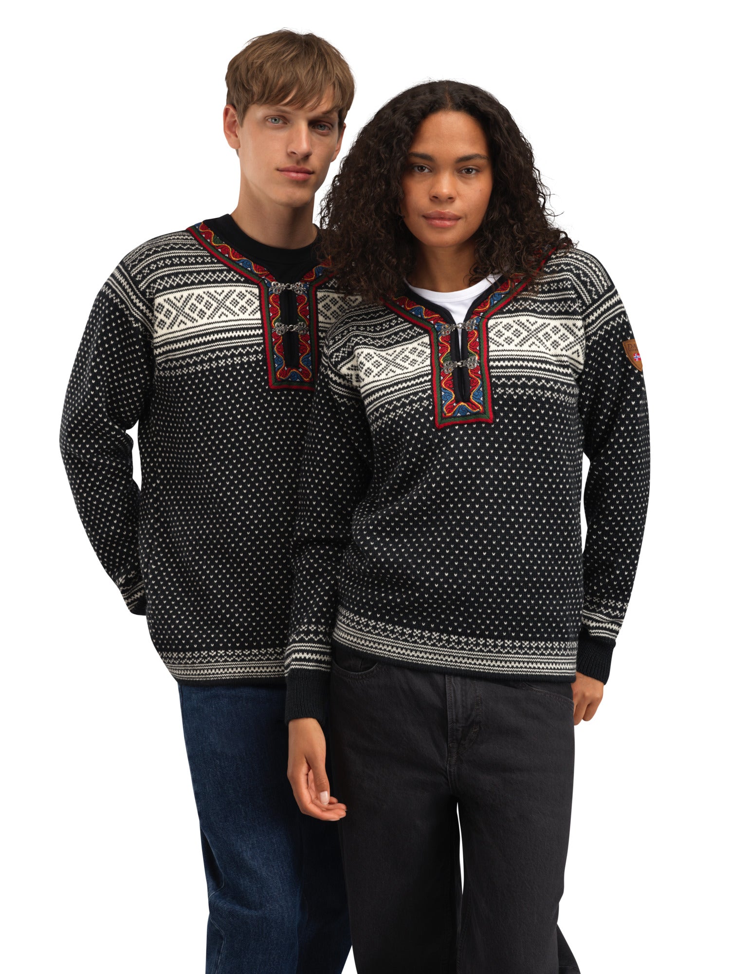 Das Setesdal-Muster ist das bekannteste norwegische Muster und wird seit Generationen gestrickt. Die kleinen V-förmigen Punkte sind als Läusemuster bekannt, während die Kreuze vor bösen Geistern schützen sollen. Hergestellt aus langlebiger norwegischer Wolle, mit Zinnschließen aus norwegischer Produktion und besticktem Band, identisch mit dem Originaldesign.