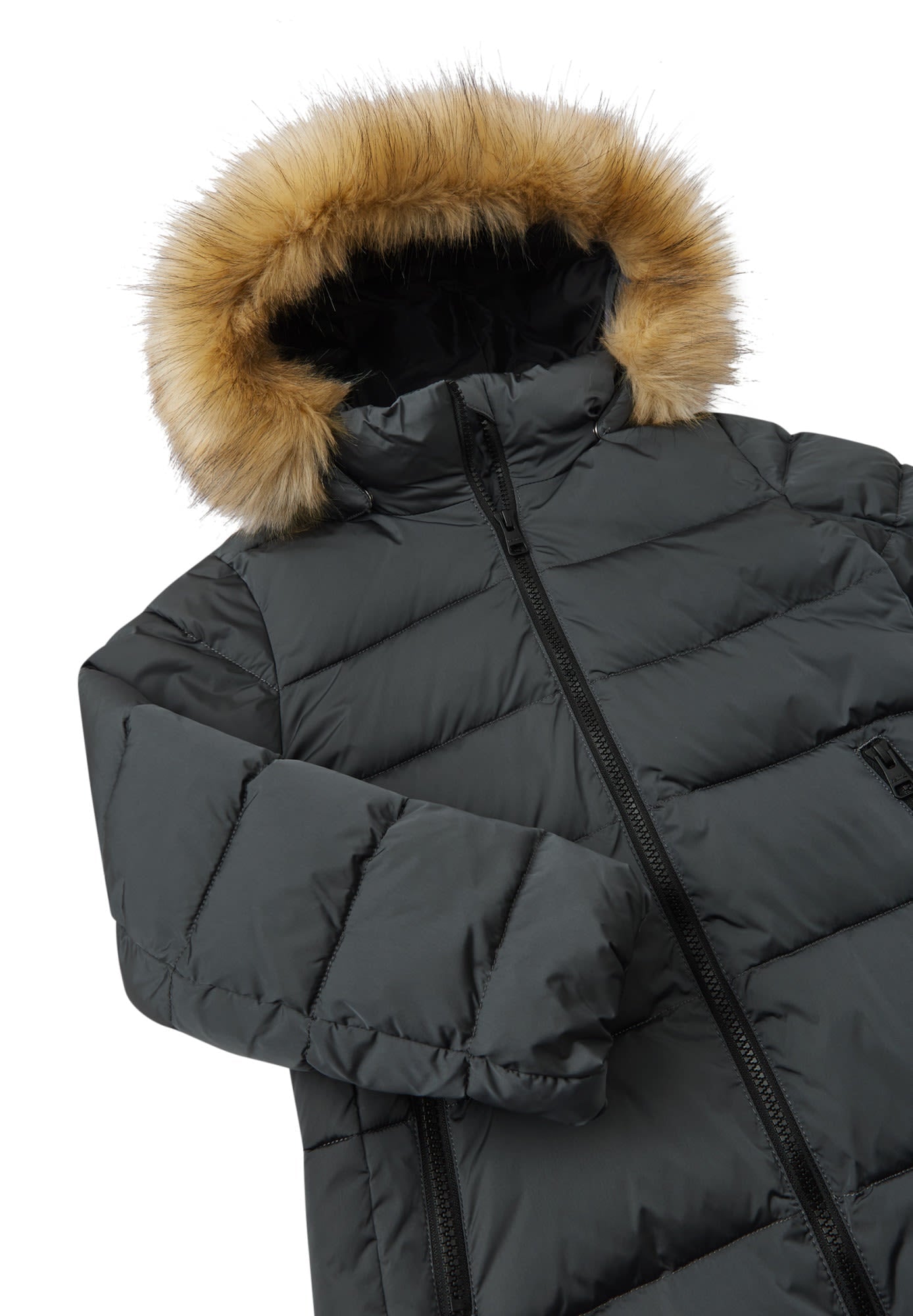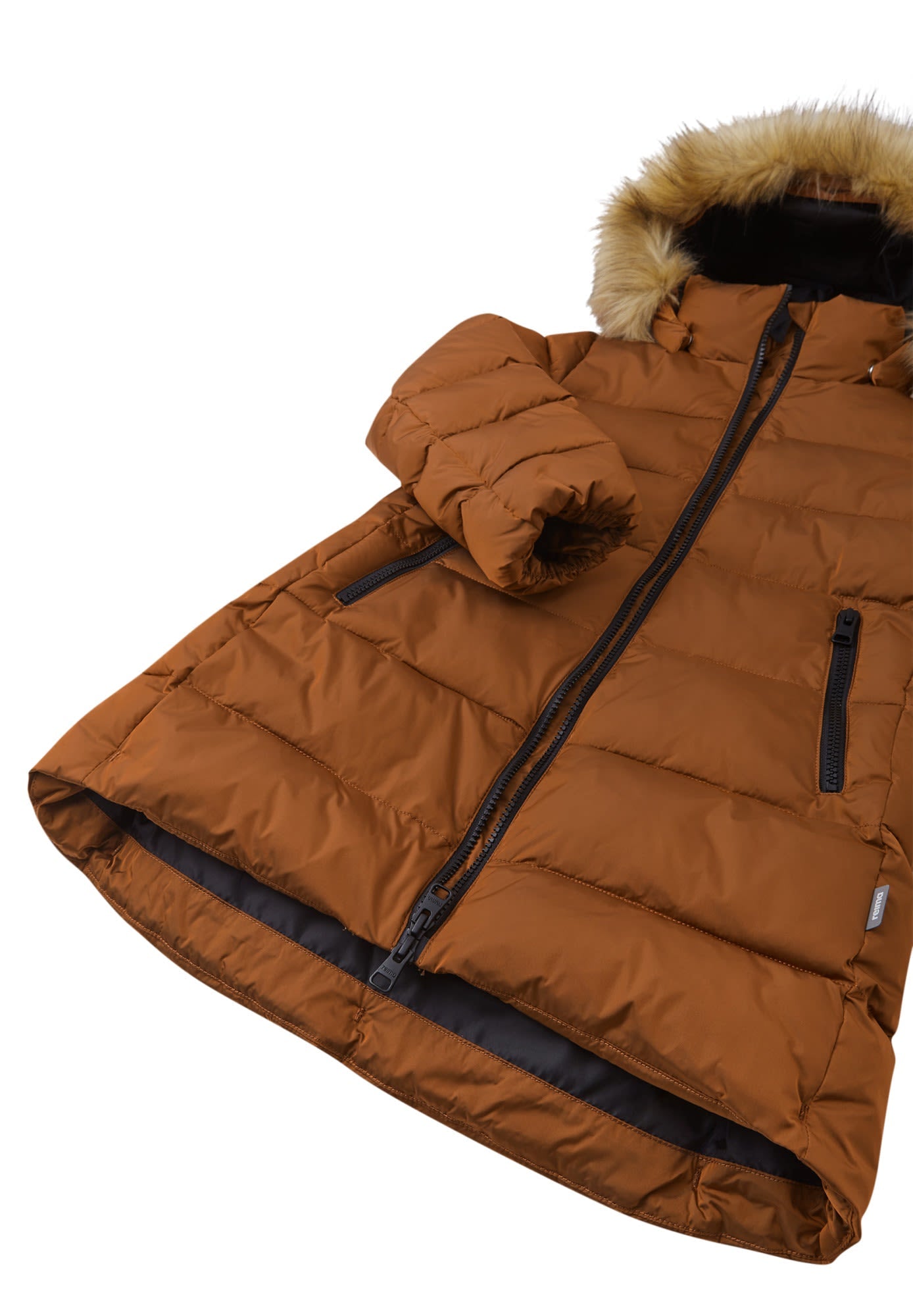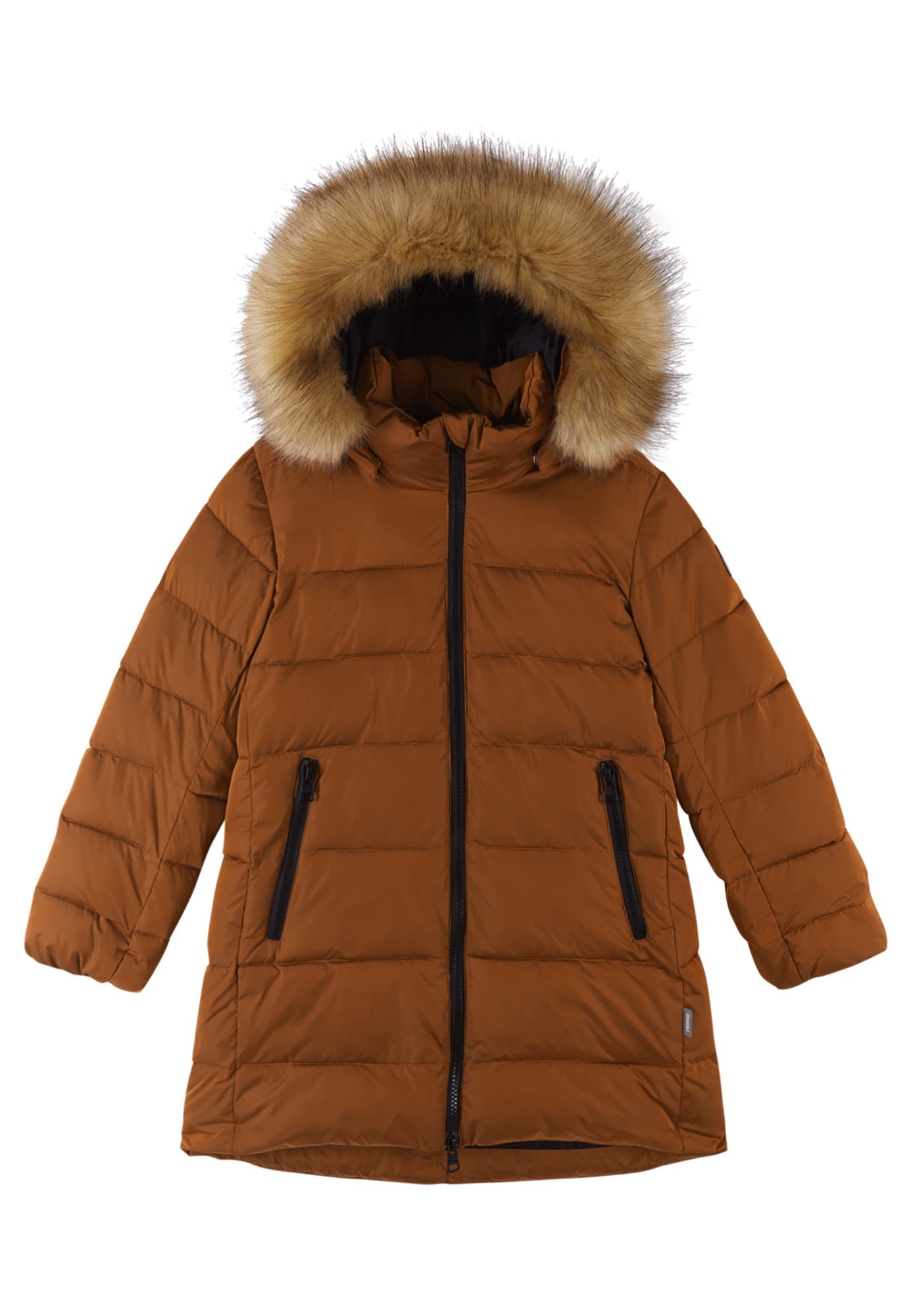 Die wunderschöne Lunta Winter Jacket von REIMA für Mädchen mit daunenähnlicher Füllung ist etwas länger und am Kapuzenrand mit einem modischen, abnehmbaren Pelzimitat besetzt.